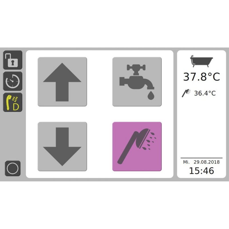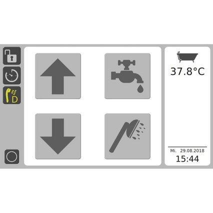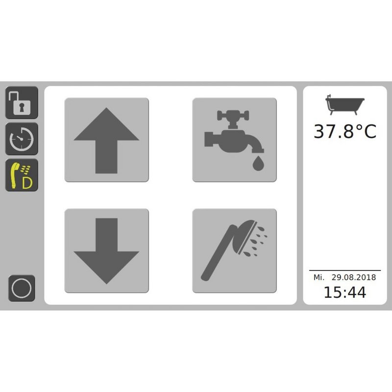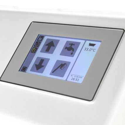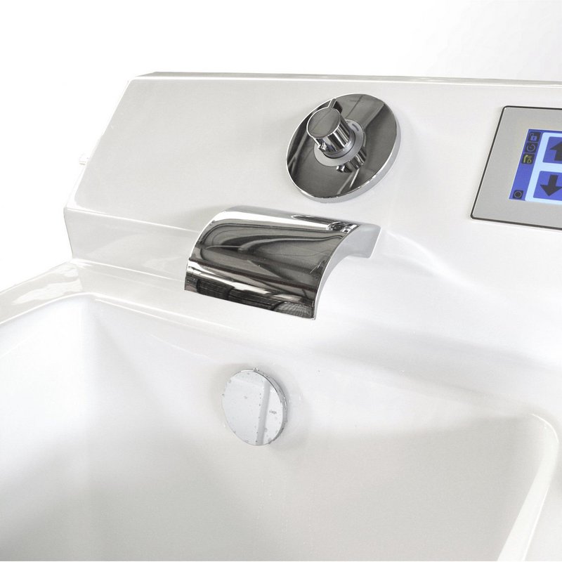 L'intelligente controllo termostatico iTub garantisce la massima sicurezza: oltre a numerose funzioni di comfort, la vasca monitora sia la temperatura dell'acqua che entra nella vasca principale, sia quella dell'acqua che entra attraverso la doccetta, sia quella dell'acqua presente nella vasca, per garantire in ogni momento la sicurezza del paziente.